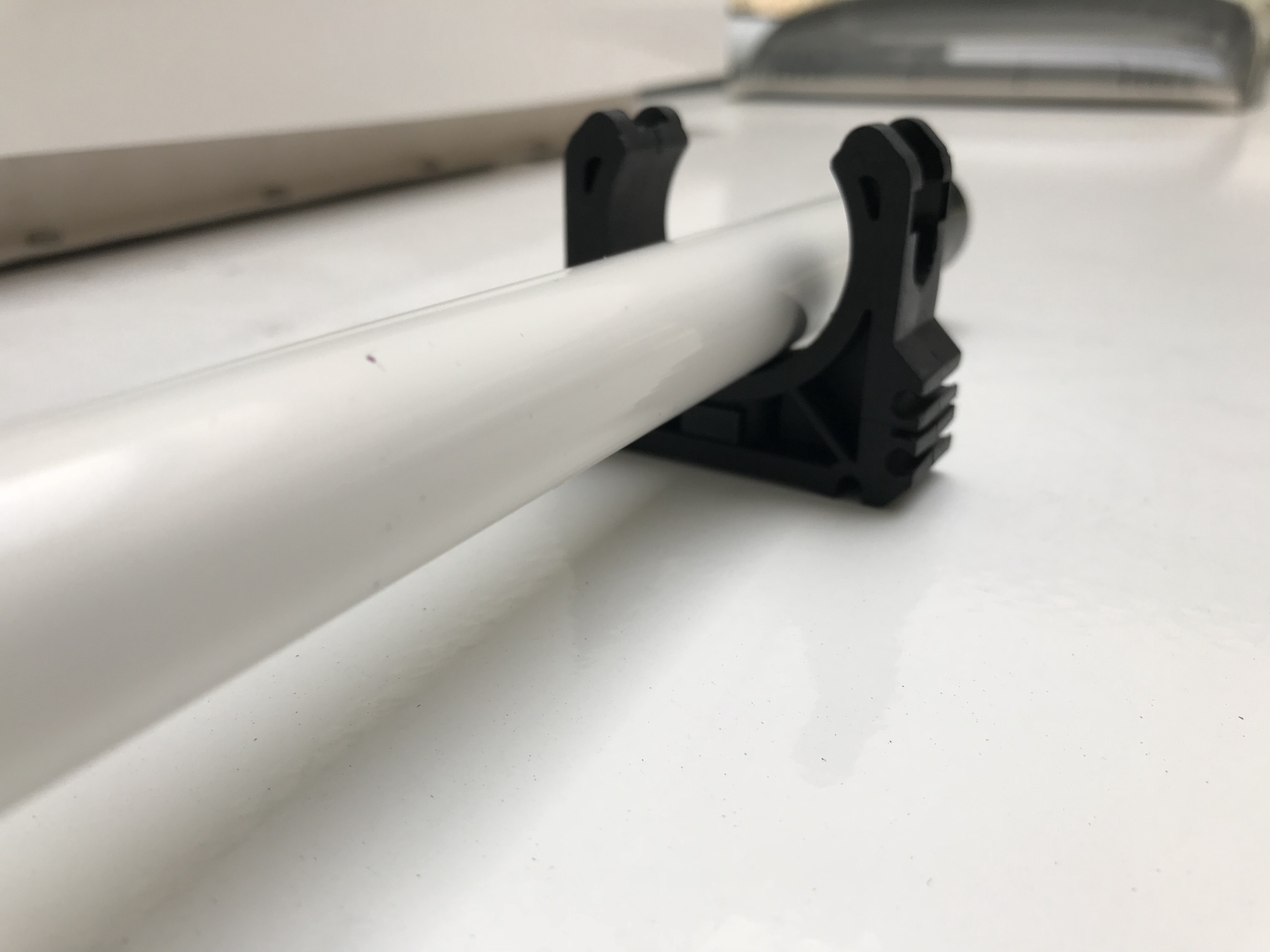 Damit die Antenne während der fahrt, im herunter gelegten zusatnd nicht aufs Dach aufschlägt habe ich zwei Rohrhalterungen ebenfalls aufs Dach geklebt. Die Halterungen selbst wurden mit Lenkradband vom Rennrad als Dämpfung versehen und dann mit vorerst mit normalem schwarzem Klebeband ordentlich fixiert.